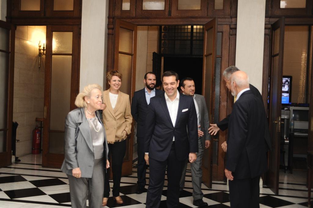Μετά από την ορκωμοσία του στο προεδρικό μέγαρο, ο Αλέξης Τσίπρας μετέβη στο μέγαρο Μαξίμου, για να αναλάβει τα καθήκοντά του από την υπηρεσιακή πρωθυπουργό, Βασιλική Θάνου.