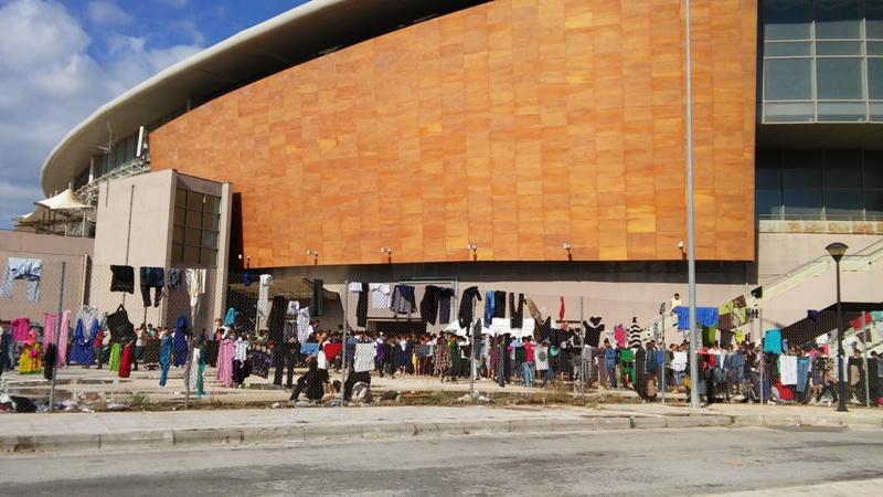 Στο κλειστό γήπεδο του Τάε Κβο Ντο στο Παλαιό Φάληρο μεταφέρθηκαν όλοι οι πρόσφυγες και οι μετανάστες από την πλατεία Βικτωρίας που εκκενώθηκε χθες το βράδυ.