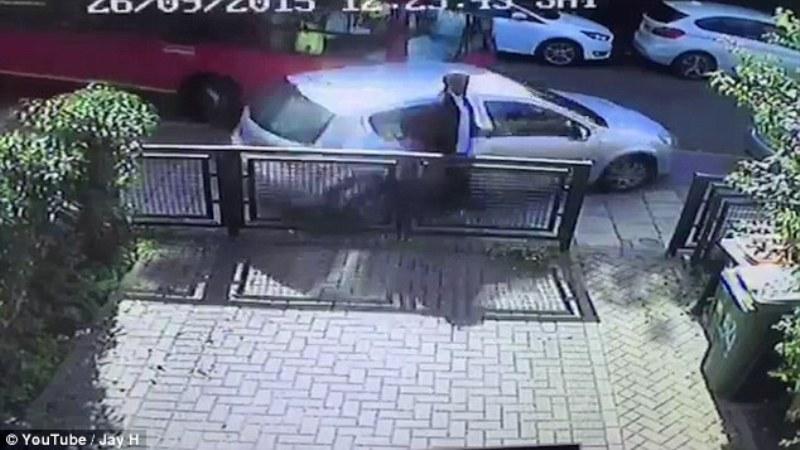 Το περιστατικό συνέβη στο Μπέκτον, στο ανατολικό Λονδίνο. Όπως μπορείτε να δείτε από την κάμερα, βρίσκεται ένα σταθμευμένο ασημί αυτοκίνητο στην άκρη του δρόμου. Κάποια στιγμή περνάει επάνω στο πεζοδρόμιο ένας καλοντυμένος πεζός.
