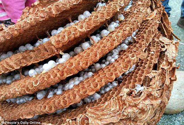 Μια γιγάντια σφηκοφωλιά ανακάλυψε ένας άνδρας, ο Γου, την ώρα που μάζευε μανιτάρια στο Χουνάν, στην κεντρική Κίνα.