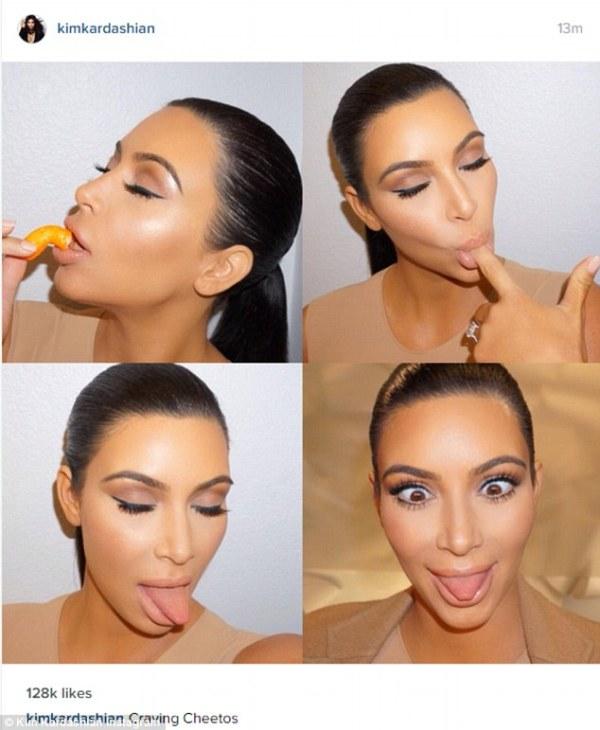 Τώρα τα φλας ανάβουν για την Κάιλι και τον πατέρα της τον/την Κάιτ και όχι για την Κιμ. Η Κιμ αποφάσισε πως δεν θα παραδώσει τόσο εύκολα το στέμμα της. Έτσι αποφάσισε και να φωτογραφηθεί γυμνή αλλά και να ανεβάσει στο istangram φωτογραφίες της καθώς τρώει αισθησιακά ένα… γαριδάκι. Στη συνέχεια γλείφει τα δάχτυλα της.