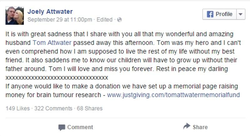 Ο Τομ Ατουότερ νικήθηκε από τον καρκίνο. Πέθανε πριν από λίγες ημέρες ύστερα από εξαντλητικές και επίπονες μάχες με την ασθένεια. Πριν πεθάνει είχε βάλει σκοπό της ζωής του, να βοηθήσει τη μικρή θετή του κόρη, Κέλι Σμιθ, να βγει νικήτρια στη μάχη με τον παιδικό καρκίνο.