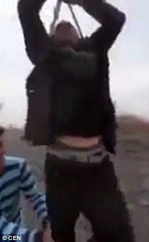 Στο βίντεο, φαίνονται οι νεαροί την στιγμή που τοποθετούν μια θηλιά γύρω από τον λαιμό του ηλικιωμένου και στη συνέχεια τον κρεμάνε στον εκσκαφέα σε χωματόδρομο.