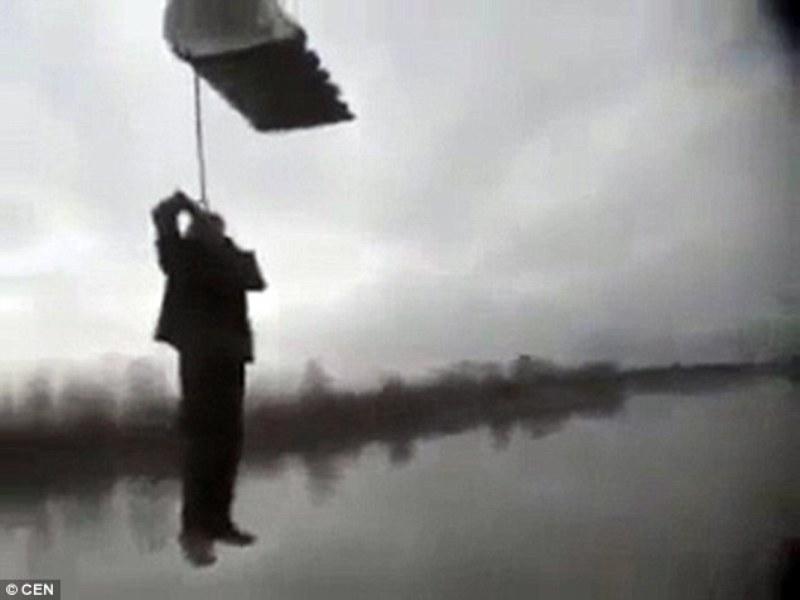 Μέσα σε λίγα δευτερόλεπτα, ο ηλικιωμένος προσγειώθηκε στο έδαφος ανακουφισμένος από την πίεση που αισθανόταν στον λαιμό του.