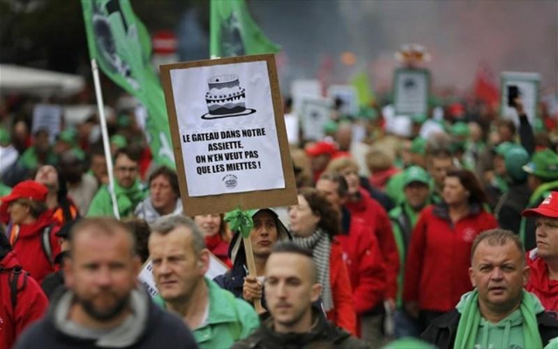 Οι διαδηλωτές ξεχύθηκαν στους δρόμους και διαδήλωσαν μαζικά ενάντια στα μέτρα λιτότητας που προωθεί η κυβέρνηση του Σαρλ Μισέλ. Συνδικαλιστές, σωματεία, φοιτητές, μαθητές, συνταξιούχοι που ξεπερνούν τις 100.000 φώναξαν ΟΧΙ στα μέτρα.