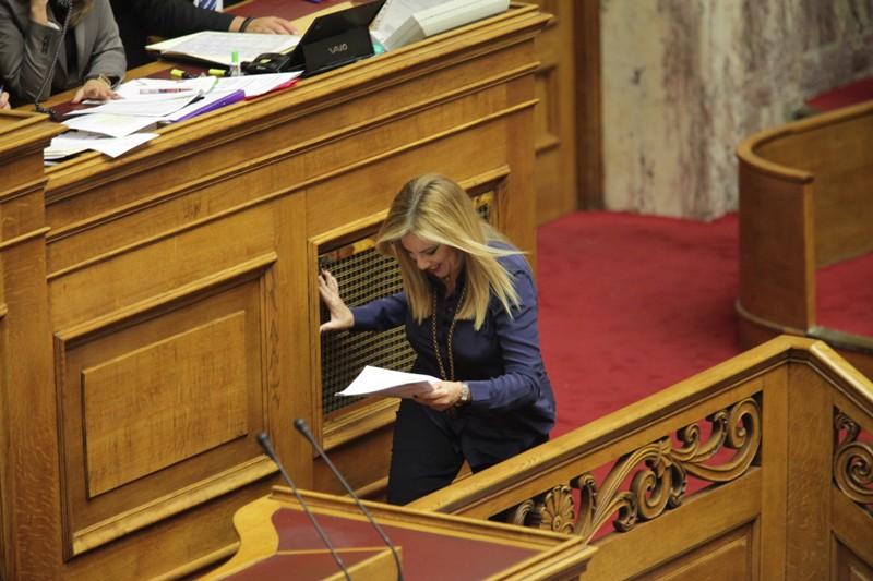 Ανεβαίνοντας στο βήμα της Βουλής για την ομιλία της η Φώφη Γεννηματά σκόνταψε και παραλίγο να πέσει…
