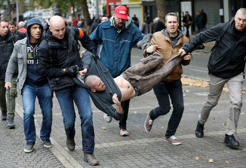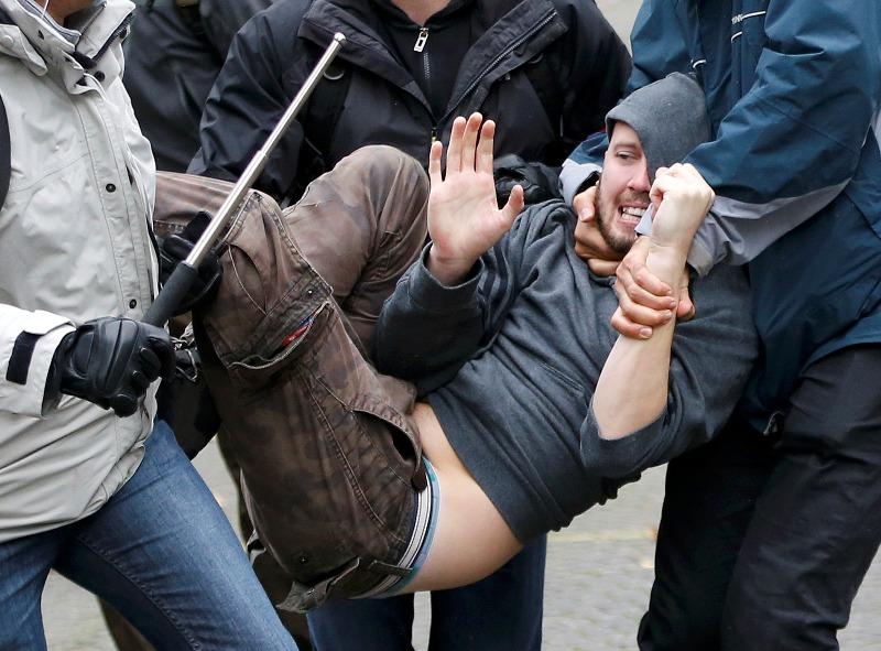 Υπήρξαν μεμονωμένα επεισόδια μεταξύ λιμενεργατών και ανδρών των δυνάμεων ασφαλείας. Τουλάχιστον ένας αστυνομικός τραυματίστηκε, σύμφωνα με φωτορεπόρτερ του Γαλλικού Πρακτορείου.