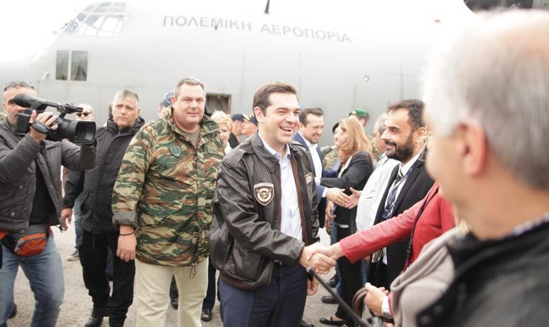Ο πρωθυπουργός φόρεσε μάλιστα ακόμα και δερμάτινο τζάκετ, το οποίο φέρει διακριτικό με το όνομα και την ιδιότητα του πρωθυπουργού. Ο Αλέξης Τσίπρας μάλιστα βρέθηκε και στο πιλοτήριο του C-130, το οποίο τον μετέφερε στον Έβρο.