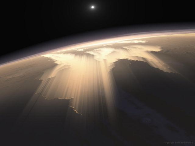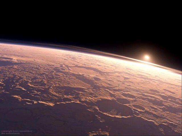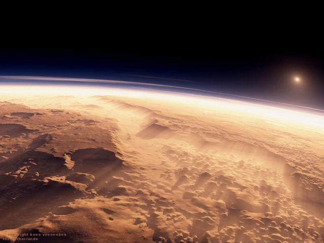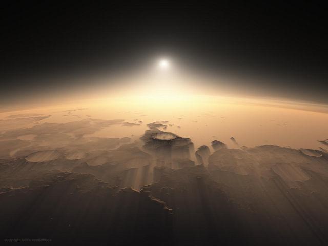 Εκπληκτικές φωτογραφίες από το ηλιοβασίλεμα στην επιφάνεια του πλανήτη Άρη τράβηξε ο φωτογράφος Κις Βινένμπος.