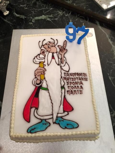 Ο επίτιμος πρόεδρος της ΝΔ γιόρτασε τα γενέθλιά του με δισέγγονα, εγγόνια και παιδιά αλλά τις εντυπώσεις έκλεψε η τούρτα γενεθλίων που απεικόνιζε τον… Πανοραμίξ, τον γνωστό χαρακτήρα από το κόμικ Αστερίξ.