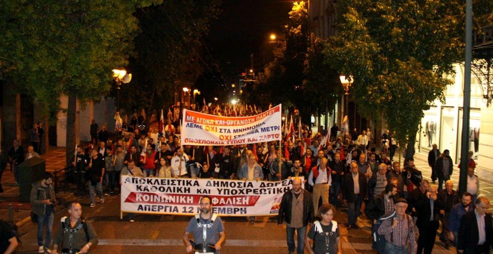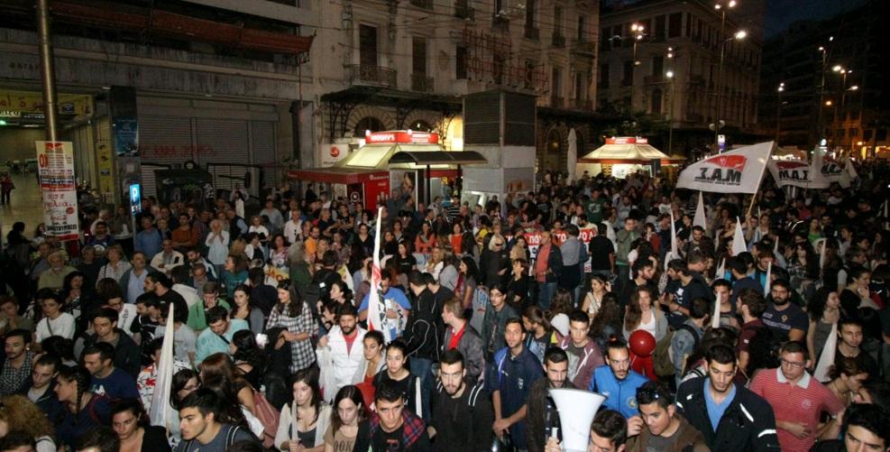 Μετά τη συγκέντρωση ακολούθησε πορεία στην Σταδίου και την Πανεπιστημίου, η οποία όμως μπλοκαρίστηκε από την αστυνομία στο ύψος τους οδού Ομήρου, λόγω της επίσκεψης Ολάντ στο Προεδρικό Μέγαρο.