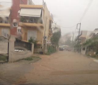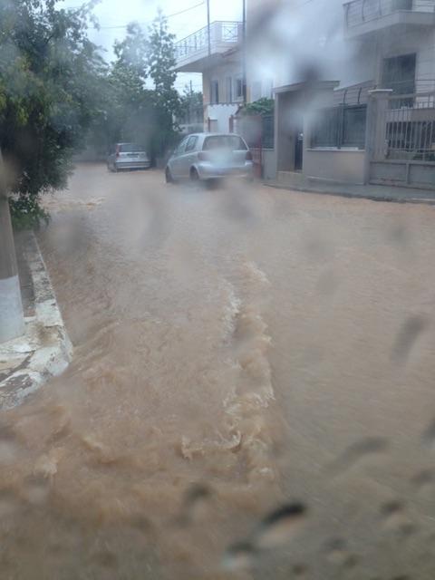 Η οδός μετατράπηκε σε χείμαρρο εξαιτίας της έντονης βροχόπτωσης με αποτέλεσμα πολλοί οδηγοί να εγκλωβιστούν στα οχήματα τους.