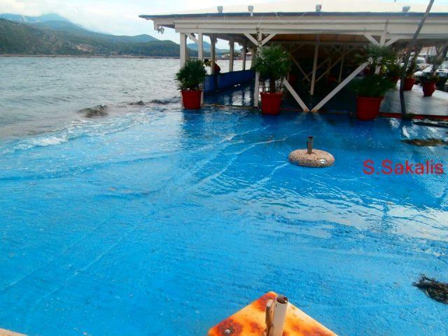 Οι φωτογραφίες των κατοίκων απεικονίζουν το μέγεθος των προβλημάτων που προκλήθηκαν στην περιοχή, με τους ντόπιους ψαράδες να αναφέρουν πως ο καιρός μαζί με την παλίρροια έφερε μεγάλο όγκο νερού μέσα στον κόλπο του Αργοστολίου με αποτέλεσμα την άνοδο της στάθμης του νερού και την υπερχείλιση .
