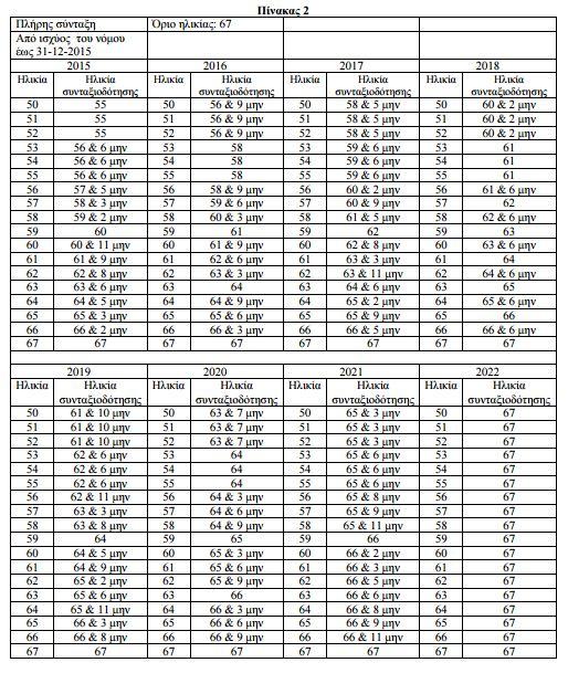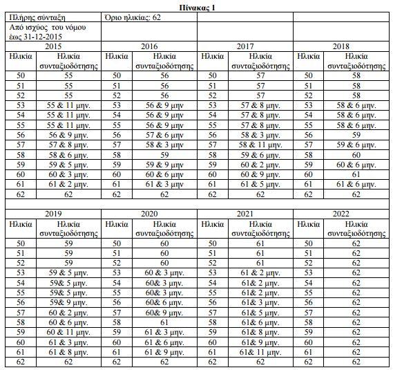 Η μετάβαση στα νέα αυξημένα όρια ηλικίας γίνεται σταδιακά και θα ολοκληρωθεί σε έξι χρόνια (μέχρι το 2022).