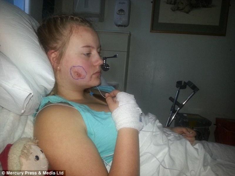 ο μάγουλο του πρήστηκε και γέμισε πύον σε μέγεθος μιας μπάλας του γκολφ. Ξύπνησε με φρικτούς πόνους και μεταφέρθηκε στο νοσοκομείο.