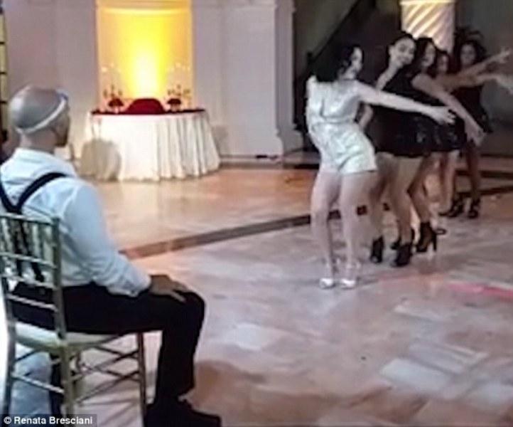 Ο γαμπρός που κάθεται στην καρέκλα χαμογελά, ιδρώνει και ξεφυσάει καθώς βλέπει την γυναίκα του να λικνίζεται αισθησιακά και να τον κοιτάζει στα μάτια. Μάλιστα όταν οι 4 παράνυφοι, όλες φίλες της νύφης, την ακολουθούν στο χορευτικό τότε όχι μόνο ο γαμπρός αλλά και οι καλεσμένοι ξεσπούν σε επιφωνήματα και χειροκροτήματα. Οι προβολές του συγκεκριμένου βίντεο στο ιντερνετ αγγίζουν τις 900.000