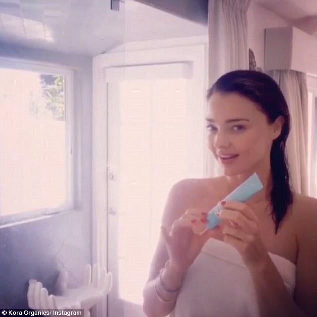 Η 32χρονη, προκειμένου να προωθήσει την δική της σειρά ομορφιάς, Kora Organics, ανέβασε στα social media video που τιτλοφορείται «A day in the life of Miranda Kerr». Σε αυτό φαίνεται η όμορφη Αυστραλή να κάνει διάφορα πήλινγκ στο πρόσωπο της, να βάζει μάσκες ομορφιάς και περιποίησης, μετά από ένα ζεστό ντους.