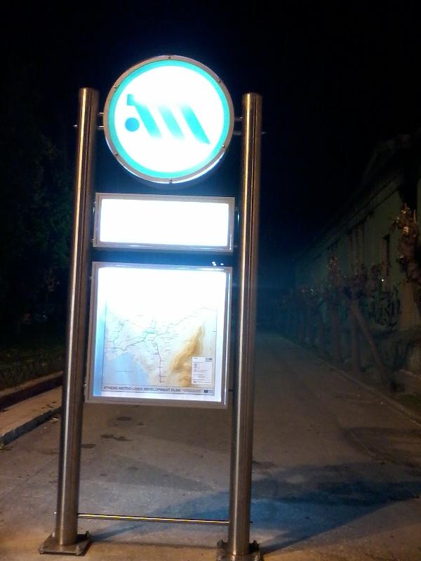 Όμως, στο πλαίσιο της ενημέρωσης για την νέα, «κίτρινη» γραμμή, ο ΟΑΣΑ έστησε την στήλη – σήμα κατατεθέν του αττικού μετρό στην Τοσίτσα.