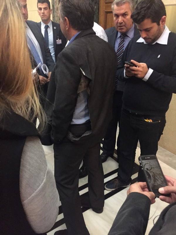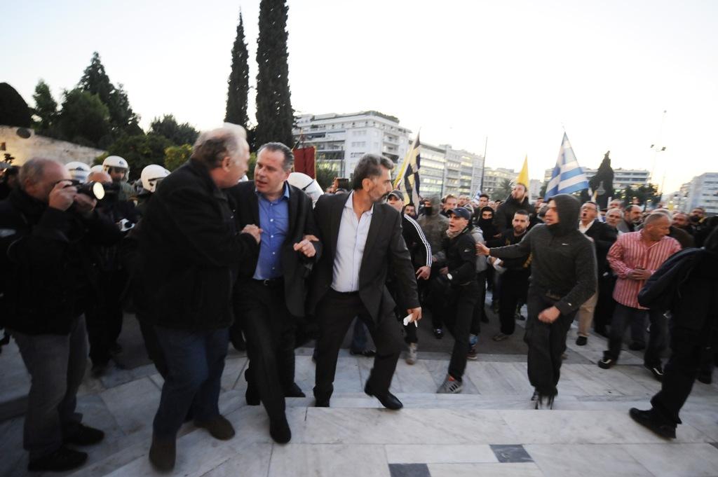 Μόλις έγινε αντιληπτός ο βουλευτής από ομάδα αγνώστων που σύμφωνα με πληροφορίες ανήκαν στο μπλοκ στης Χρυσής Αυγής, ξεκίνησαν συνθήματα όπως «αλήτες, προδότες, πολιτικοί» και στη συνέχεια ομάδα κινήθηκε εντανίον του, χτυπώντας τον και σκίζοντάς του τα ρούχα.