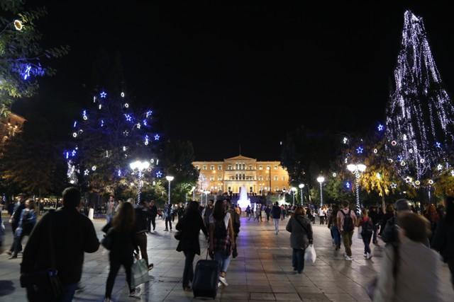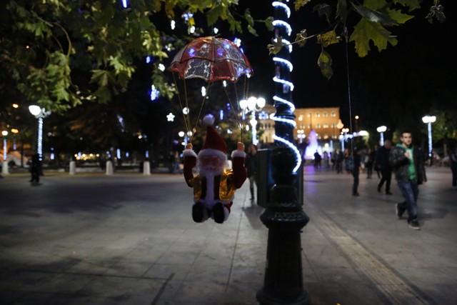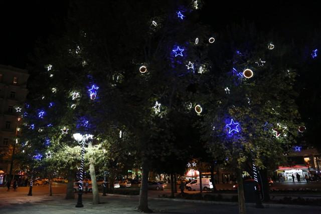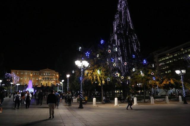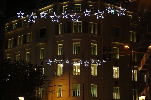 Αν και δεν υπάρχει το πάλαι πότε παραδοσιακό χριστουγεννιάτικο δέντρο, τα φωτάκια και τα αστέρια που κοσμούν την πλατεία Συντάγματος μας βάζουν (έστω και πρόωρα) στο κλίμα των Χριστουγέννων.
