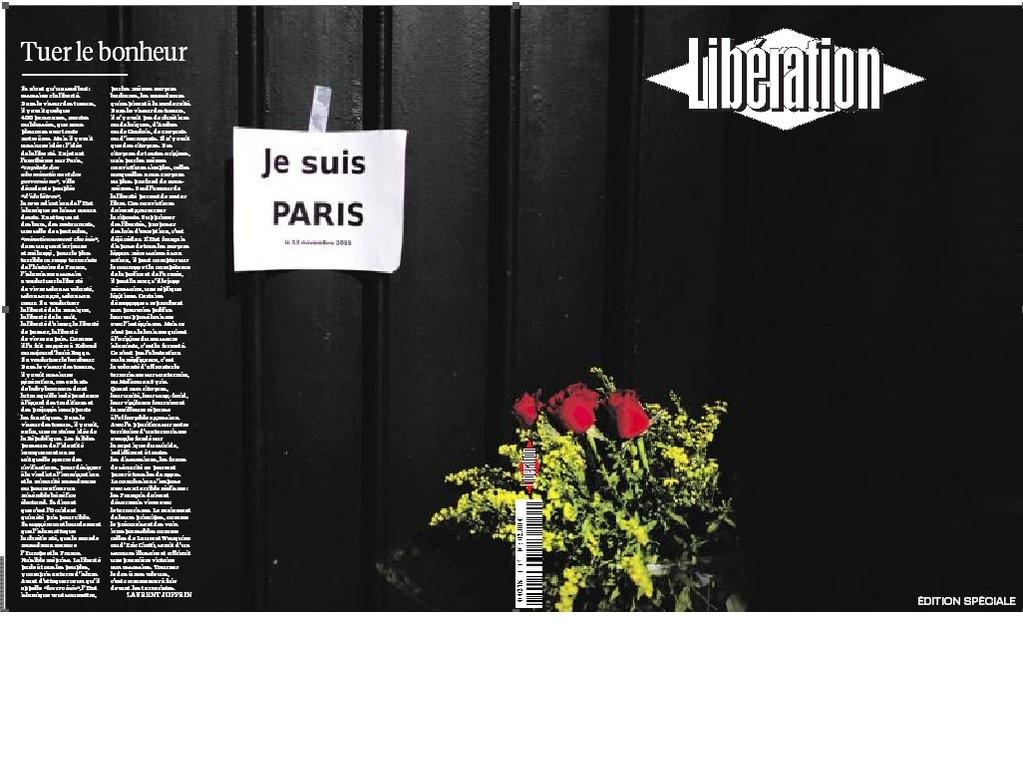 Με μαύρο εξώφυλλο, ένα μπουκέτο λουλούδια και γράφοντας «Je suis PARIS» κυκλοφορεί αύριο η Liberation, τιμώντας τα θύματα της αιματοβαμμένης από τους τρομοκράτες Παρασκευής, της μέρας που άλλαξε την ιστορία της σύγχρονης Γαλλίας και της Ευρώπης.