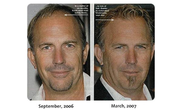 Συμβαίνει ακόμα και στους πιο γοητευτικούς σταρ. Ο Κέβιν Κόστνερ είναι ένας από τους διάσημους ηθοποιούς, που είδε το μαλλί του να αραιώνει. Δεν κατέφυγε στη λύση της περούκας, όπως έκανε ο Τζον Τραβόλτα, αλλά έβαλε εμφυτεύματα.