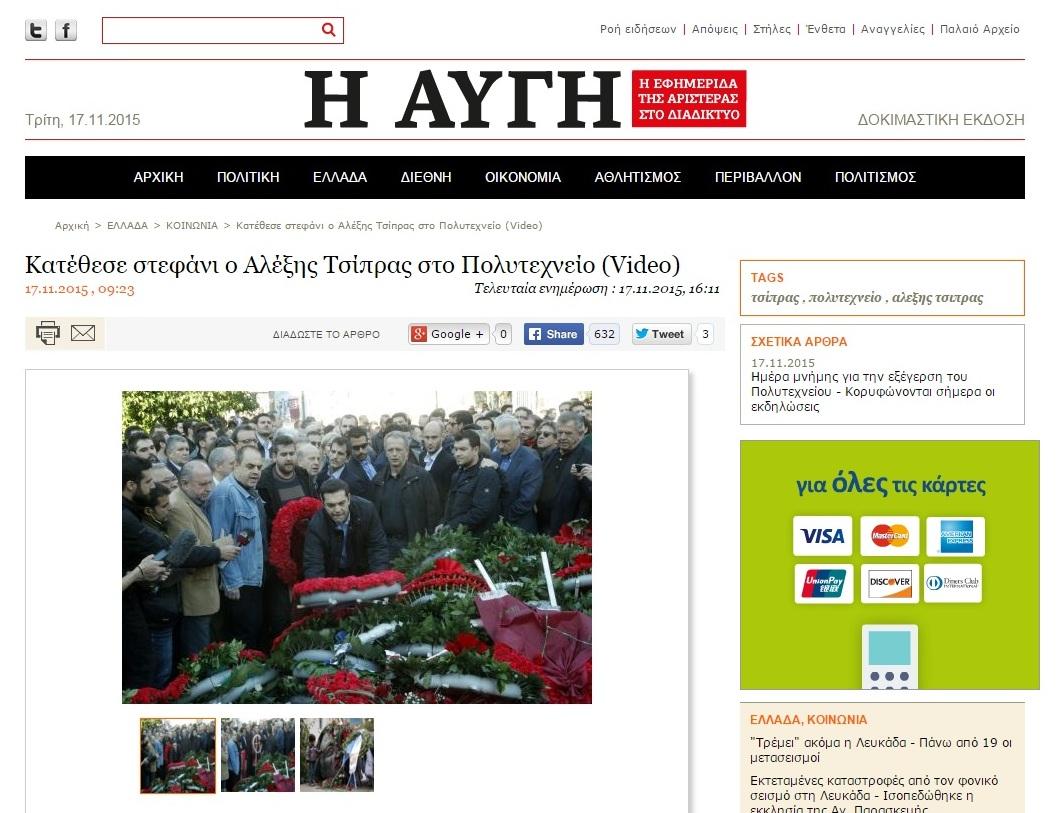 Στη συνέχεια πάντως η «Αυγή» επανήλθε με τίτλο χωρίς τη σχετική αναφορά στα περί «πρώτου πρωθυπουργού»: