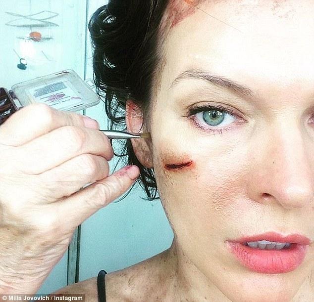 Η πρωταγωνίστρια των ταινιών του εμπορικού αυτού franchise, που σκηνοθετεί μάλιστα, ο σύζυγος της, Πολ Άντερσον, εξήγησε ότι ο make up artist δούλεψε στο πρόσωπο της για την μεταμόρφωση τέσσερες ώρες, και μάλιστα ξεκίνησε στις 5 το πρωί. Στη συνέχεια πόσταρε και άλλες φωτογραφίες με τον «κανονικό» εαυτό της, όπου είναι γεμάτη αίματα μετά από τις μάχες της με το «κακό».