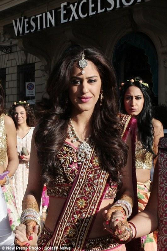 Τα μάτια όλων στράφηκαν στην τεράστια πίστα όταν ο χαρούμενος γαμπρός ανέβηκε και έδειξε τις επιδόσεις του στο χορό. Όμως εκείνο που στην κυριολεξία μαγνήτισε τους πάντες ήταν η ομορφιά της νύφης. Συνδυάζει τα Ινδικά χαρακτηριστικά με υπέροχα γατίσια καταγάλανα μάτια και ένα ακόμη πιο τέλειο κορμί.