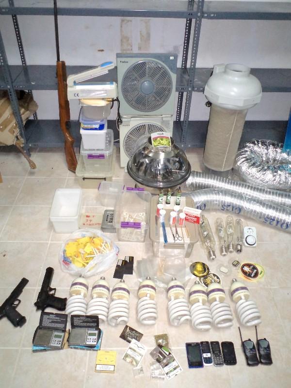 Στο εργαστήριο, που εντοπίστηκε στην οικία του 49χρονου, βρέθηκαν και κατασχέθηκαν, μεταξύ άλλων: Ποσότητα ακατέργαστης κάνναβης βάρους 1.382 γραμμαρίων, ένα αεροβόλο πιστόλι, ένα αεροβόλο τυφέκιο και ένα πιστόλι Replica.