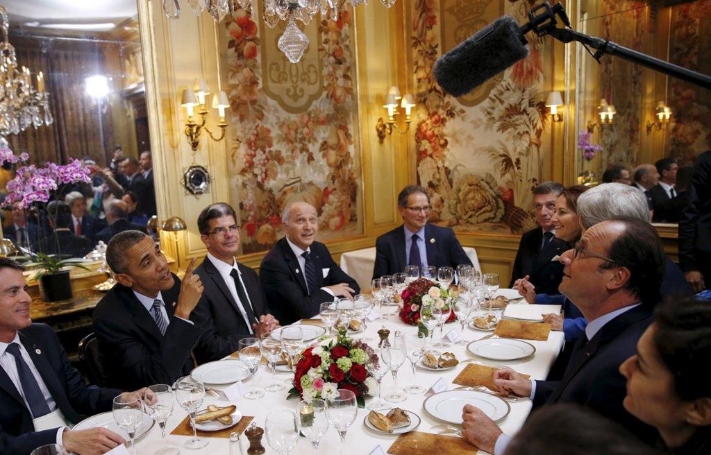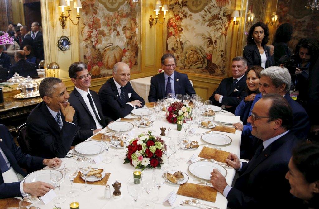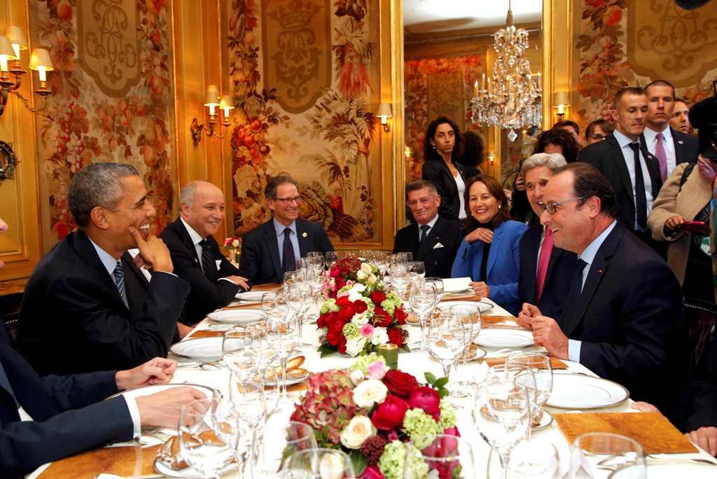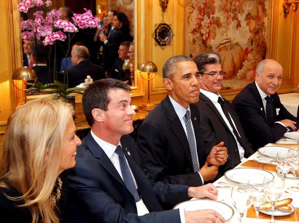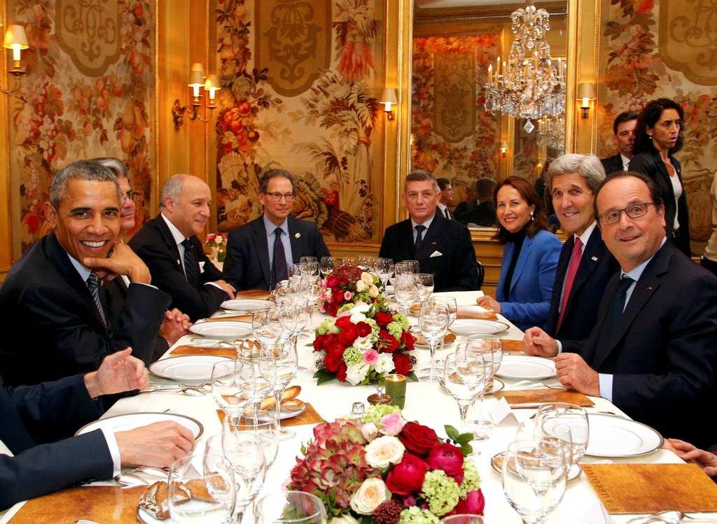 Στο δείπνο παρευρέθηκαν και ο πρωθυπουργός της Γαλλίας Μανουέλ Βαλς, ο υπουργός Εξωτερικών Λοράν Φαμπιούς, η υπουργός Περιβάλλοντος (και πρώην σύντροφος του Ολάντ) Σεγκολέν Ρουαγιάν, ο υπουργός Εξωτερικών των ΗΠΑ, Τζον Κέρι και ο πρέσβης των ΗΠΑ στο Παρίσι.