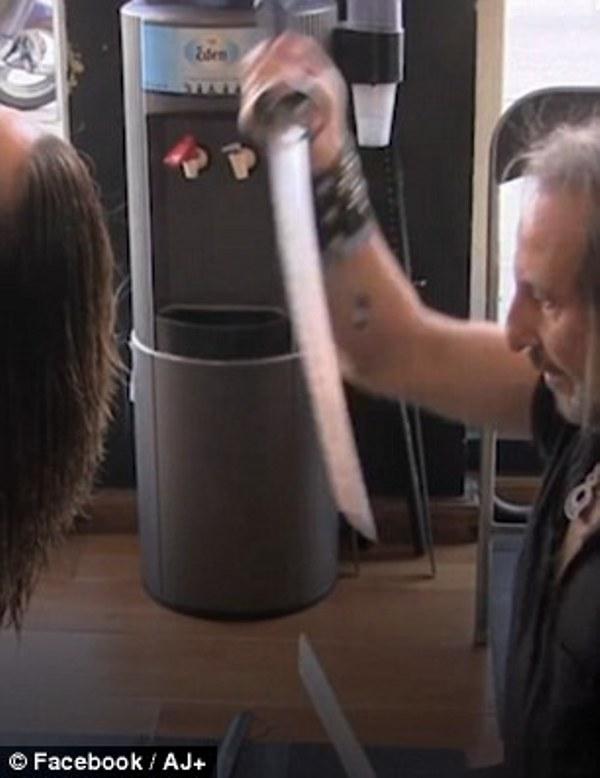 Δείτε πως κουρεύει τις πελάτισσες του κομμωτηρίου του χρησιμοποιώντας μόνο σπαθιά και φλόγες. Όλες δηλώνουν ενθουσιασμένες.