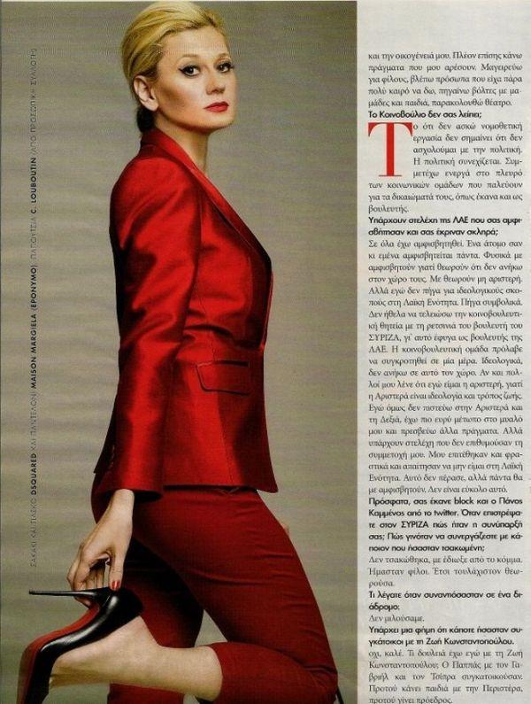 Η πρώην βουλευτής του ΣΥΡΙΖΑ και της Λαϊκής Ενότητας δίνει συνέντευξη στο Downtown που επανακυκλοφορεί στην Ελλάδα και μιλά για την ζωή μακριά από τη Βουλή, ενώ την «πέφτει» στον Τσίπρα κατηγορώντας τον πως μιμείται τον Ανδρέα Παπανδρέου, πως ο καλοκαιρινός έρπης του ήταν προϊόν… μακιγιάζ, ενώ αποκαλύπτει πως «γελάει» με τον πρωθυπουργό.