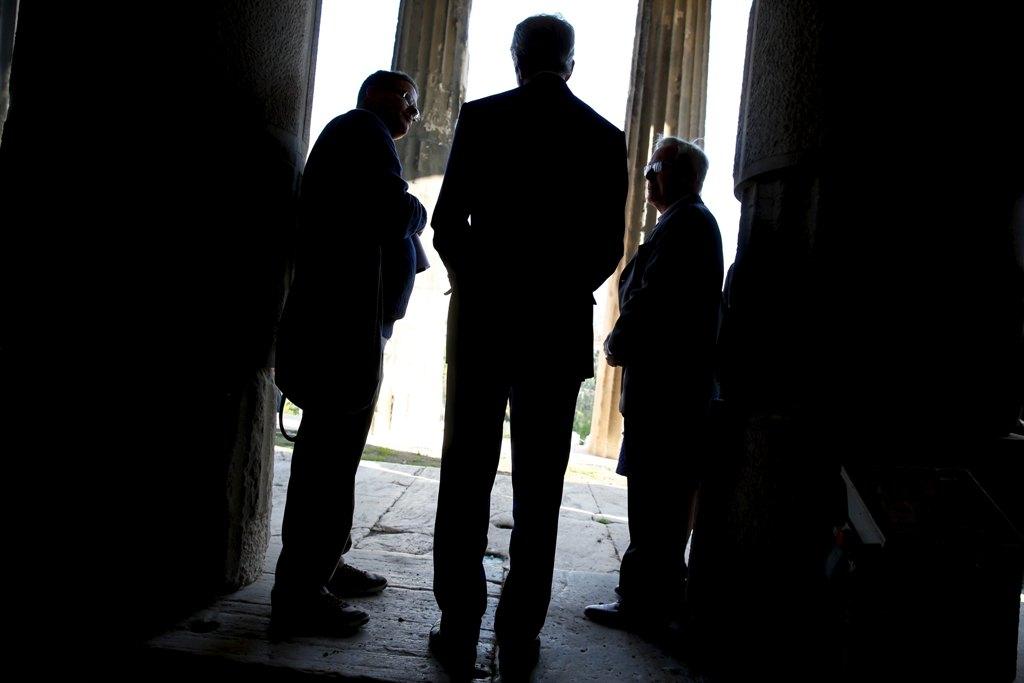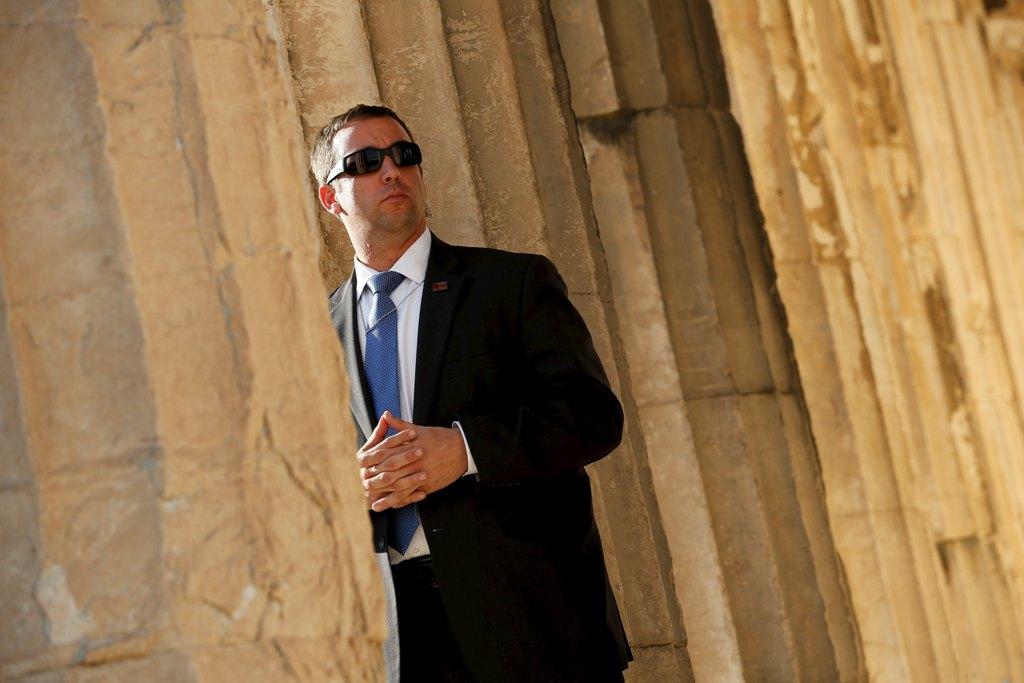 Η παρουσία των ανέκφραστων πρακτόρων της μυστικής υπηρεσίας των ΗΠΑ με τα μαύρα κοστούμια, τα σκούρα γυαλιά και τα ακουστικά, ανάμεσα στους αρχαιοελληνικούς κίονες είναι ένα μάλλον παράξενο και αντιφατικό θέαμα.