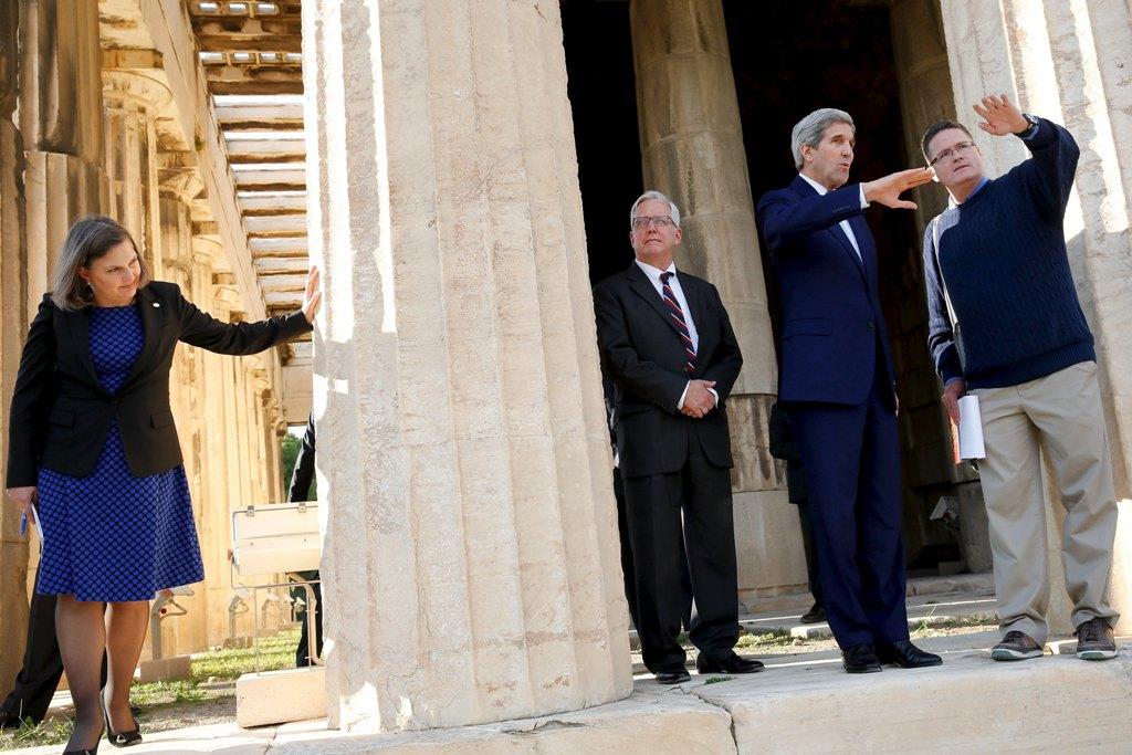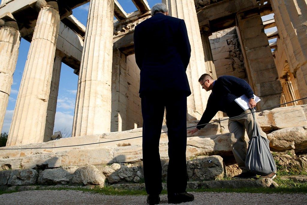 Οι πράκτορές φυσικά συνόδευαν τον υπουργό εξωτερικών των ΗΠΑ Τζον Κέρι, ο οποίος ξεναγήθηκε στον ναό του Ηφαίστου και την αρχαία αγορά στο Θησείο, από τον αρχαιολόγο Κέβιν Ντέιλι.