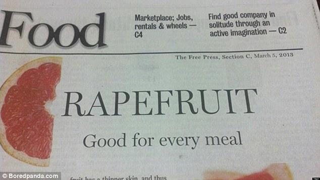 Ο γραφίστας είχε έμπνευση αλλά το αποτέλεσμα μοιάζει περισσότερο για το φρούτο του βιασμού, το οποίο προτείνουν για κάθε γεύμα.