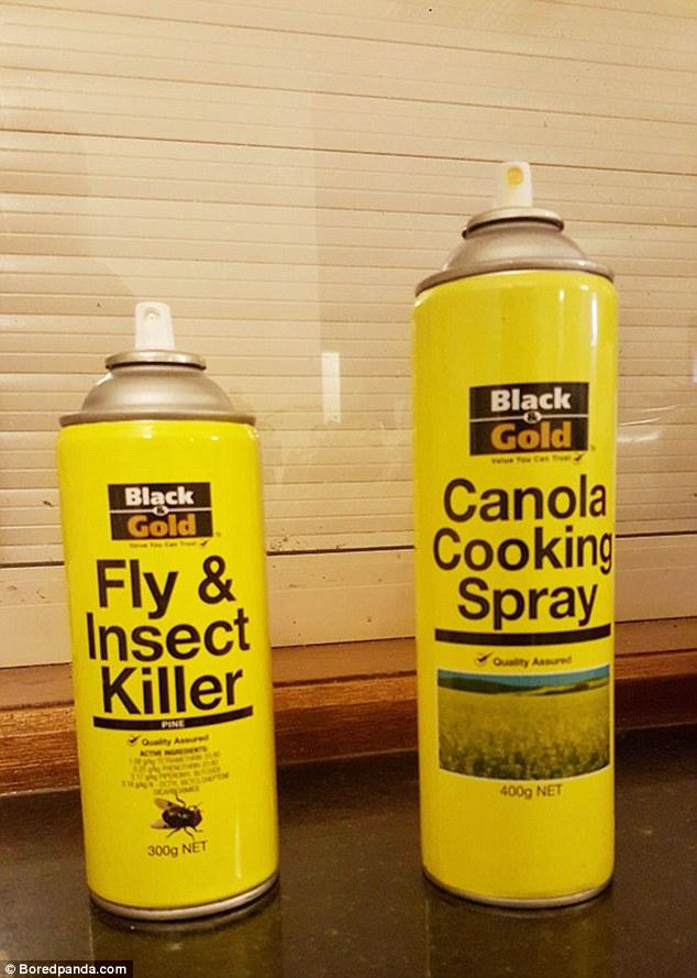 Το ίδιο μπουκαλάκι τελείως διαφορετική χρήση, το ένα για μαγείρεμα και το άλλο εντομοκτόνο.