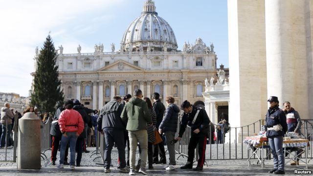 Η πρόσβαση των αυτοκινήτων στην «κόκκινη ζώνη» γύρω από την περιοχή του Αγίου Πέτρου είναι αυστηρά περιορισμένη, ενώ στην πλατεία τοποθετήθηκαν τριάντα μηχανήματα για την ανίχνευση μετάλλου κάτω από τα οποία πρέπει να περνούν υποχρεωτικά οι πιστοί. Μετά από τις τρομοκρατικές επιθέσεις του Παρισιού, υπάρχει φόβος ότι η Ρώμη και το Βατικανό, μπορεί να αποτελέσουν έναν από τους επόμενους στόχους.