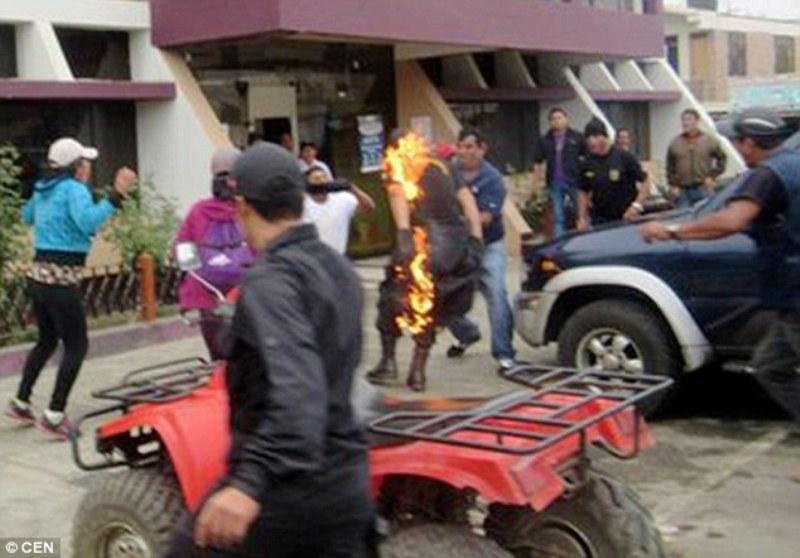 Στις διαδηλώσεις στο Περού, πέφτουν στην κυριολεξία κορμιά. Γίνεται πόλεμος. Αυτό συνέβη και στην πόλη Μόρο, όταν κατά τη διάρκεια διαδήλωσης, οι διαδηλωτές εντόπισαν αστυνομικό με στολή. Τον πλησίασαν, τον περικύκλωσαν και στη συνέχεια άδειασαν επάνω του ένα μπιτόνι βενζίνη.