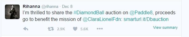 Η Ριρί δημοσίευσε έναν σύνδεσμο γράφοντας: «Στην πρώτη σειρά της Puma με τη Ριάνα στην Εβδομάδα Μόδας της Νέας Υόρκης», η εμπειρία είναι ένα από τα πολλά που προσφέρονται. Έτσι όποιος ενδιαφέρεται να καθίσει στην πρώτη σειρά της επίδειξης μπορεί να πλειοδοτήσει στη δημοπρασία που γίνεται, μέσω του συνδέσμου, ενώ τα χρήματα που θα συγκεντρωθούν θα διατεθούν για φιλανθρωπικό σκοπό.