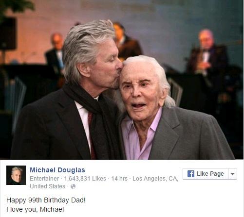Ο γνωστός ηθοποιός Μάικλ Ντάγκλας είχε την τύχη να δει τον πατέρα του, τον επίσης ηθοποιό Κερκ Ντάγκλας, να συμπληρώνει τα 99 χρόνια ζωής και επέλεξε να του ευχηθεί με ένα συγκινητικό ποστ στο facebook.
