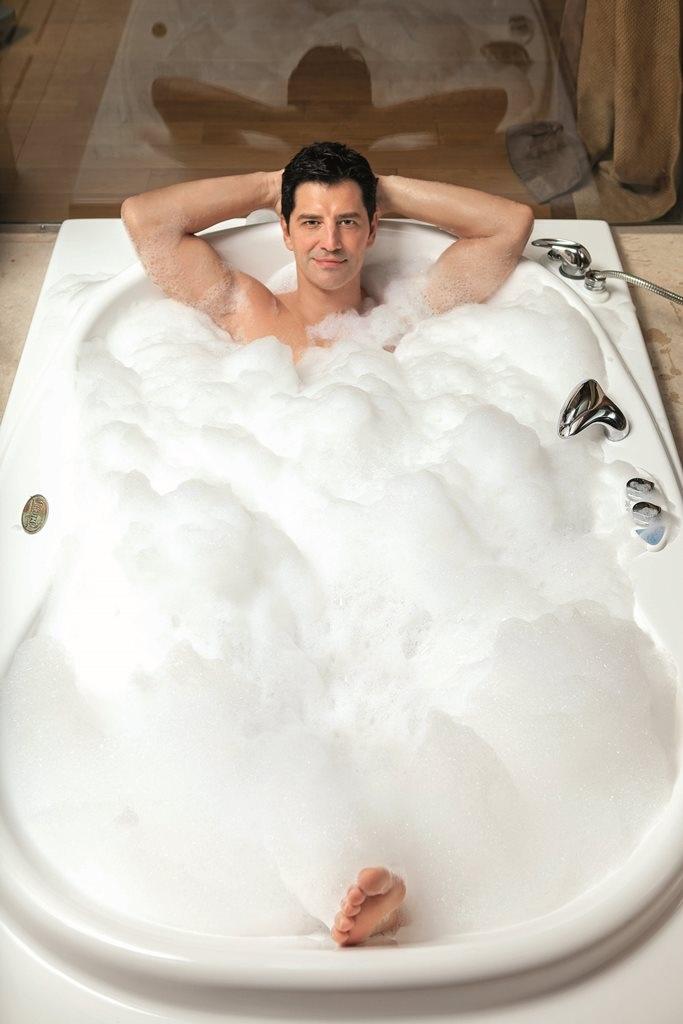 Ο αγαπημένος Έλληνας σταρ πόζαρε μέσα από τη μπανιέρα του, χαμογελώντας στον φωτογραφικό φακό του περιοδικού People.
