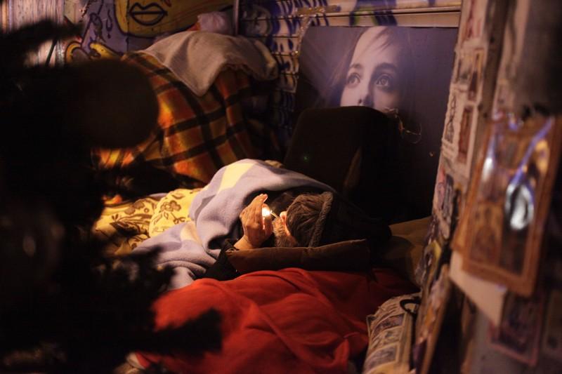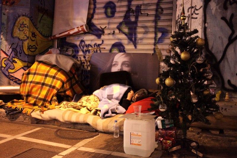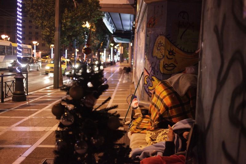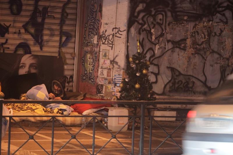 *Οι συγκλονιστικές φωτογραφίες ανήκουν στον Γιώργο Κονταρίνη για το πρακτορείο Eurokinissi. Τις συνοδεύει η εξής λεζάντα: «Ένα μικρό χριστουγεννιάτικο δέντρο στο πεζοδρόμιο της οδού Σταδίου, τραβά τα βράδια την προσοχή του περαστικού, μιας και κοσμεί το θλιβερό απάγκιο ενός άστεγου. Σε μια κόγχη, να τον προστατεύει από την παγωνιά, με τα λίγα υπάρχοντά του, στόλισε κι αυτός ένα δέντρο – μικρό και μουντό, μπροστά στην μεγάλη φωταγωγημένη λεωφόρο του κέντρου της πόλης».