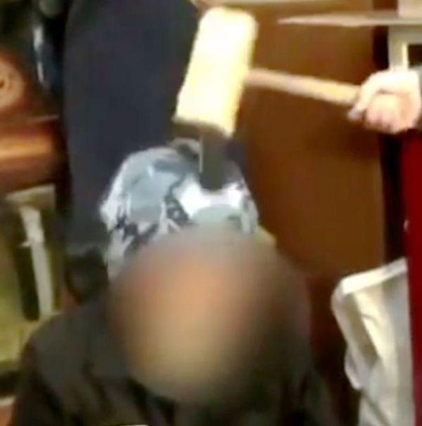 Το χτύπημα με το σφυρί προκαλεί μεγάλο πόνο και τα αυτιά του κρατούμενου βουίζουν για μέρες. Στο βίντεο θα μπορέσετε επίσης να ακούσετε τα σαδιστικά γέλια των δεσμοφυλάκων όταν χτυπούν με το σφυρί τους και διαλύουν επάνω στα κεφάλια των φυλακισμένων, το κινητό τους.