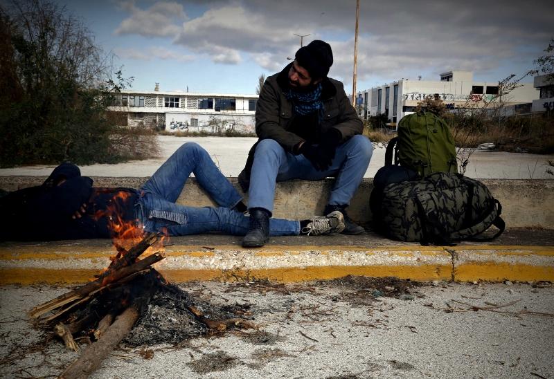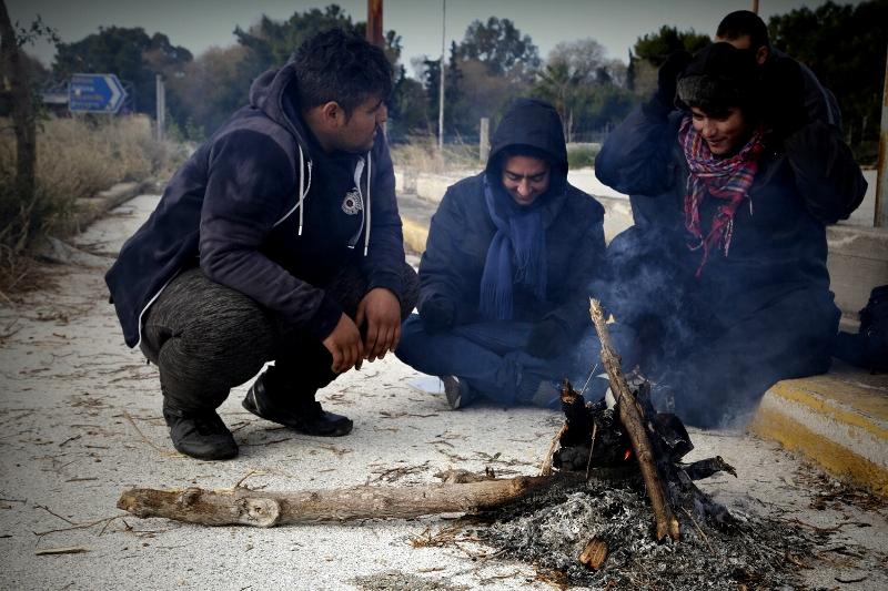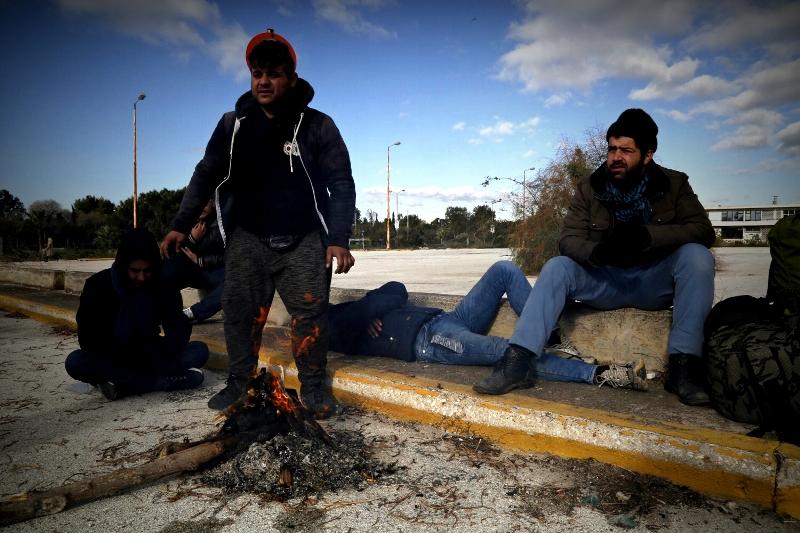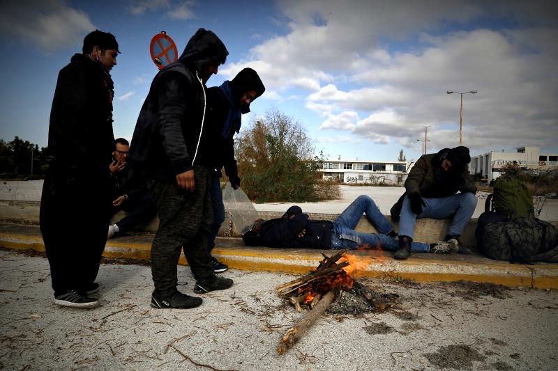 Με φωτιές στους δρόμους της παραλιακής προσπάθησαν να αντέξουν το κρύο μετανάστες που δεν έγιναν δεκτοί στο γήπεδο χόκεϊ, κατά τη μεταφορά τους από το Ταε Κβον Ντο.