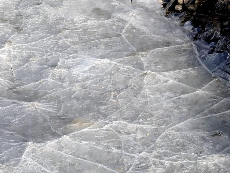 Τα νερά του ποταμού μετατράπηκαν σε μια παγωμένη κρούστα καθώς το πρωί στην περιοχή η θερμοκρασία μόλις και μετά βίας αγγίζει τους -7 βαθμούς.