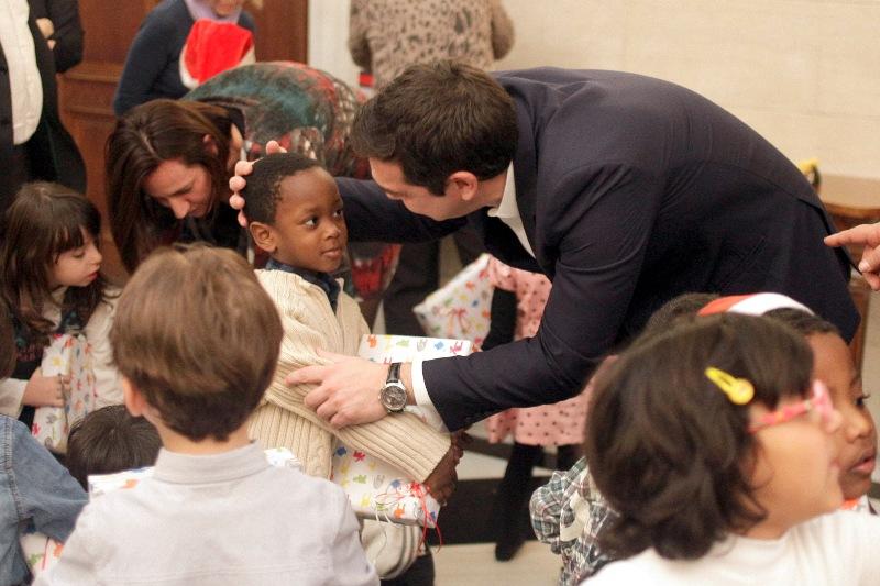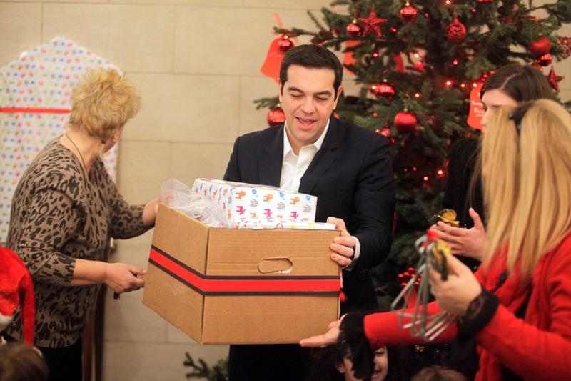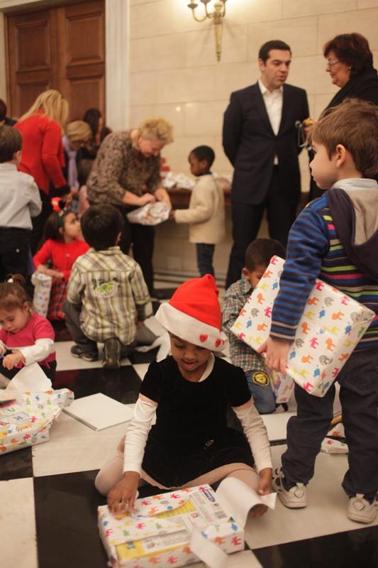 Τα παιδιά έλαβαν δώρα από τον πρωθυπουργό και τους Αλέκο Φλαμπουράρη, Νίκο Παππά και Όλγα Γεροβασίλη.
