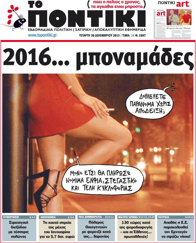 Το «Ποντίκι» κυκλοφορεί εκτάκτως την Τετάρτη, 30 Δεκεμβρίου, με 40 σελίδες και πρωτοσέλιδο τίτλο «2016… μποναμάδες» και αναλυτικό – αποκαλυπτικό ρεπορτάζ για τα «καυτά» ραντεβού του Ιανουαρίου.