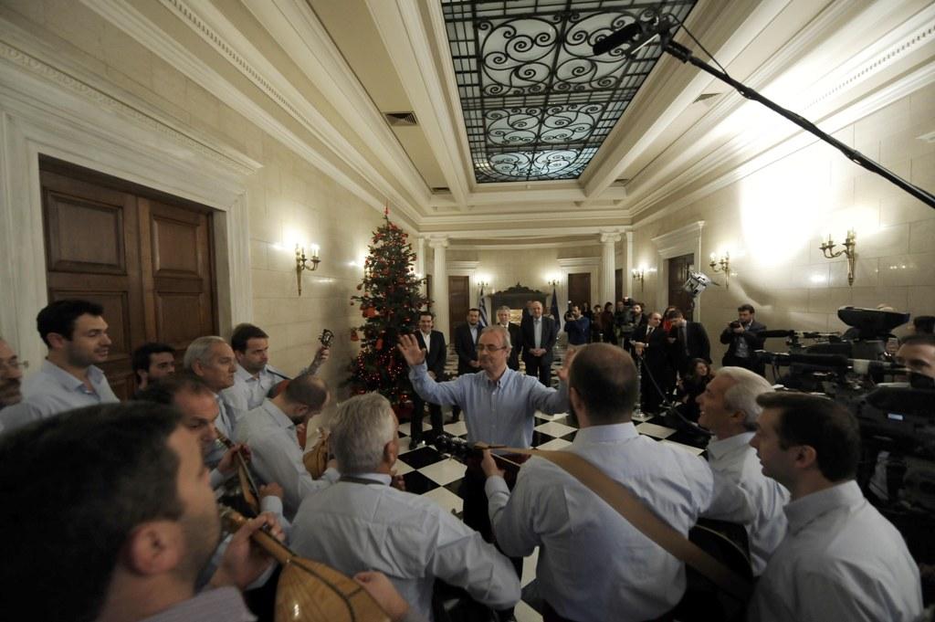 Πρώτοι οι «Τραγουδιστάδες τση Ζάκυθος» επισκέφθηκαν με μαντολίνα, κιθάρες και λαούτα τον πρωθυπουργό Αλέξη Τσίπρα για να ψάλλουν τα πρωτοχρονιάτικα «Ζακυνθινά κάλαντα», την παραμονή της Πρωτοχρονιάς.