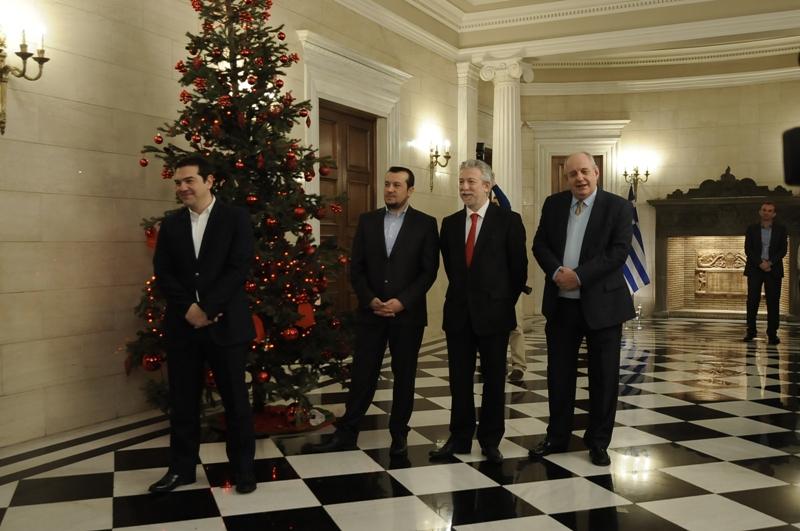 Οι «Τραγουδιστάδες τση Ζάκυθος» επισκέφθηκαν με μαντολίνα, κιθάρες και λαούτα τον πρωθυπουργό Αλέξη Τσίπρα για να ψάλλουν τα πρωτοχρονιάτικα «Ζακυνθινά κάλαντα», την παραμονή της Πρωτοχρονιάς.